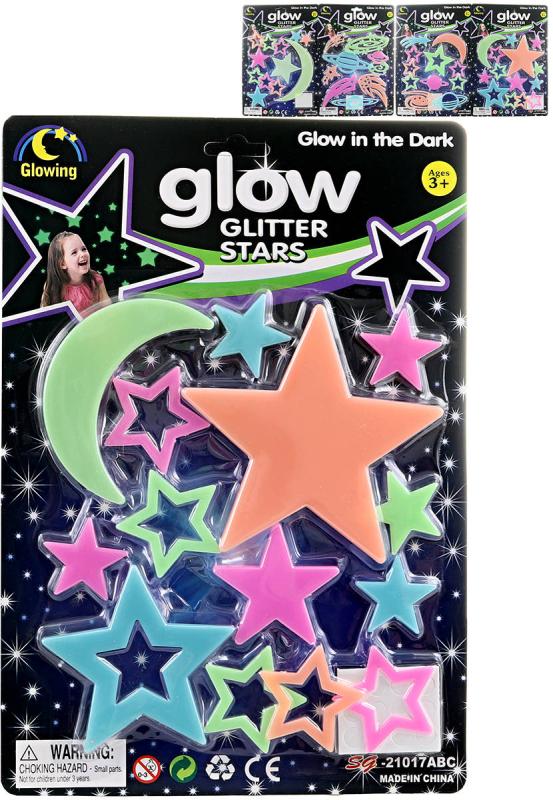 Dekorace noční obloha samolepky hvězdy svítící ve tmě na stěnu 4 druhy