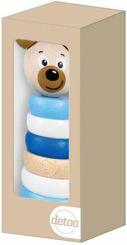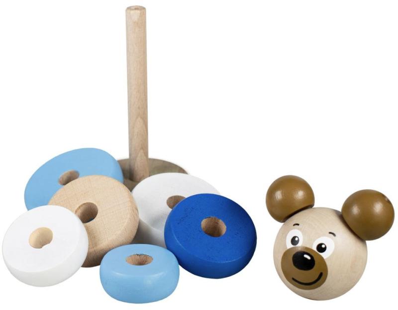 Detoa DŘEVO Baby pyramida navlékací věžička medvídek rmodrá