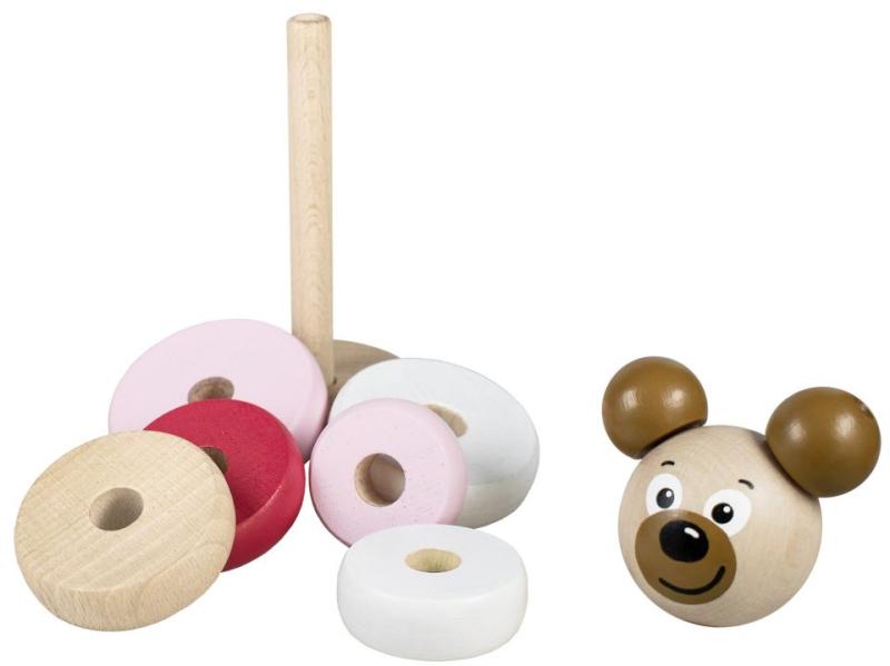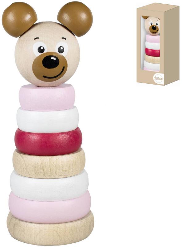 Detoa DŘEVO Baby pyramida navlékací věžička medvídek růžová