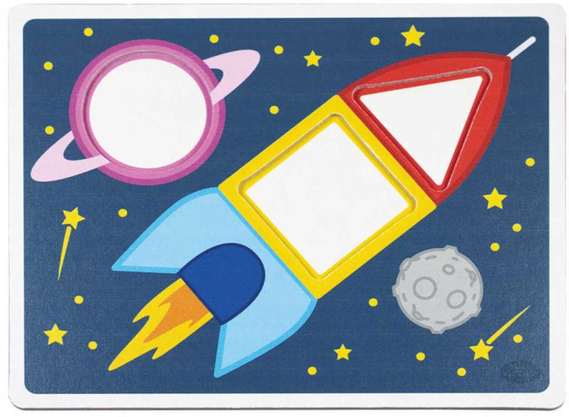 Dřevěné dílky různých tvarů a barev trénují jemnou motoriku ruky dítěte. Nenásilnou formou učí rozeznávat barvy a jednoduché geometrické tvary. Děti vkládají dílky odpovídajících barev a tvarů do kartonových předloh v šesti různých motivech. Baleno v krabici.