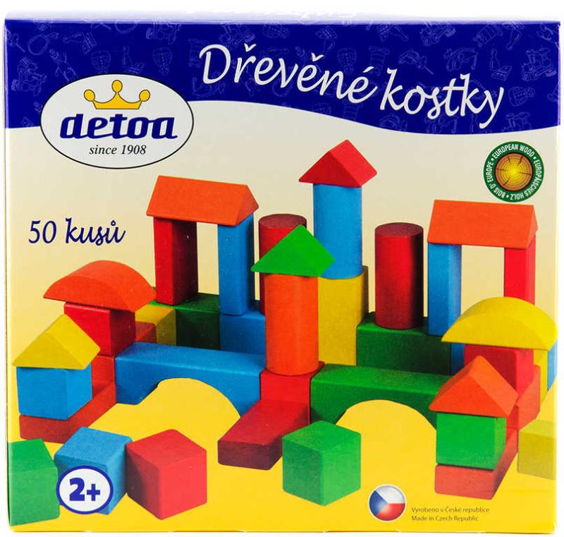 Oblíbená dřevěná stavebnice pro nejmenší děti. Nové barevné provedení zaujme nejedno dětské oko. Barevná stavebnice obsahuje 50 kusů dřevěných barevných kostek různých tvarů. Baleno v krabici z tvrdého papíru. Výrobek splňuje požadavky EU na bezpečnost hraček.