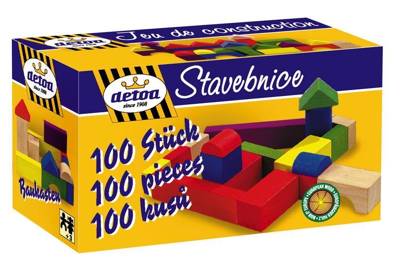 Dětská dřevěná stavebnice je hračka obsahujeící 100 kusů dřevěných kostek různých tvarů a barev o velikosti 20 mm.