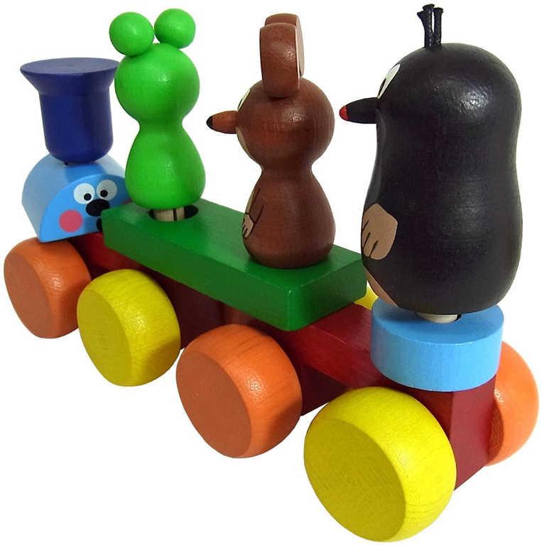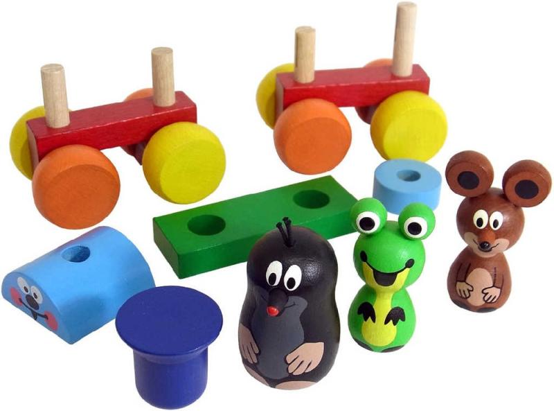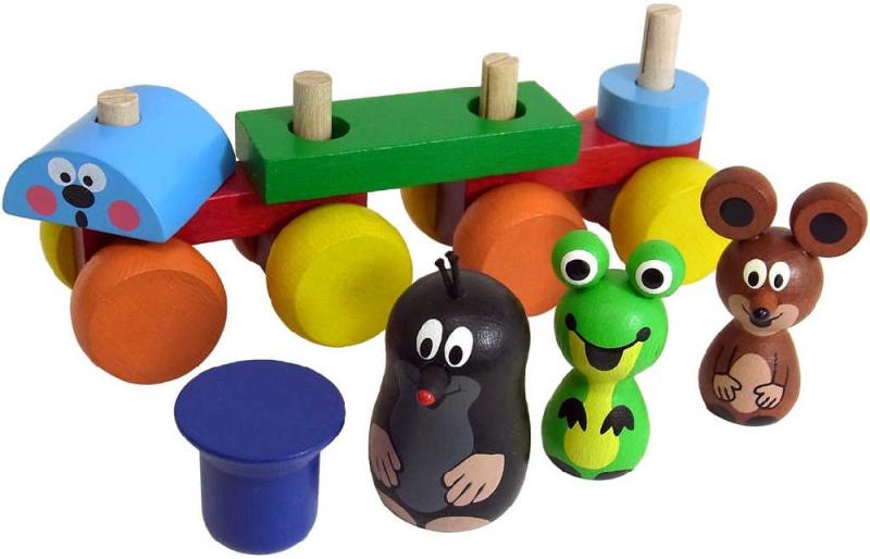Dřevěný vláček s postavičkami Krtečka a jeho kamarádů, kteří se dají z vláčku vysadit a ten pak dále rozložit na další dílky a zase poskládat dle vlastní představivosti. Hračka je v barevné provedení.