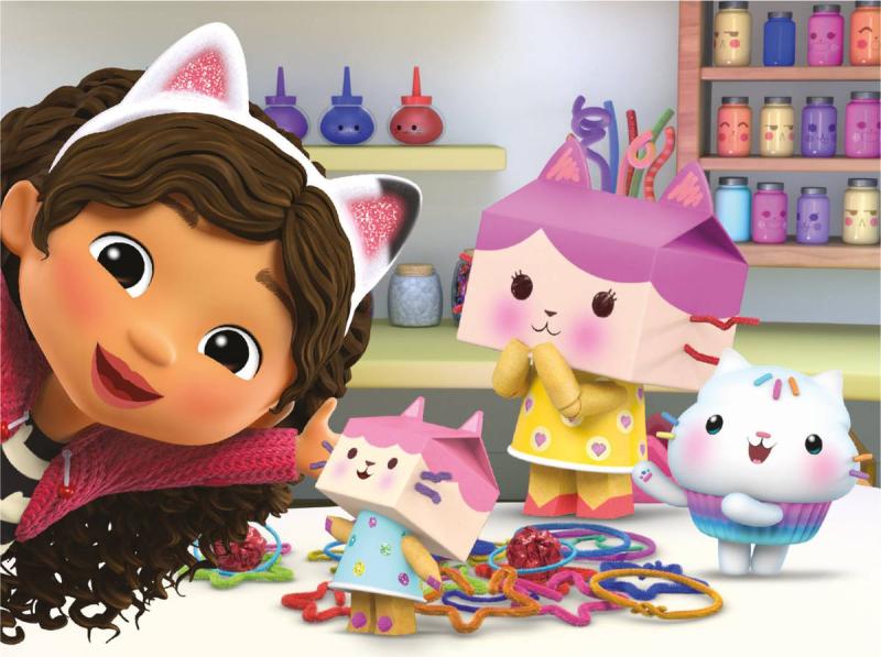Znáte všechny místosti Gábina kouzelného domku? Že ne? Nezoufejte. Stačí si s dětmi poskládat sadu 12 dřevěných obrázkových kostek s jednotlivými místnostmi a zahradou Gábina domku. Kouzelným domečkem vás provede nejen Gábi, ale i její věrné kočičí společnice. 12 kostek poslouží nejen jako skládačka, ale i jako stavební materiál na kočičí domeček. Dítka se u nich skvěle zabaví, a přitom potrénují motorické schopnosti a představivost. Ke všem šesti obrázkům jsou v krabičce také předlohy. Skládačka byla vyrobena v ČR a je určena pro tvořivé děti od 3 let.