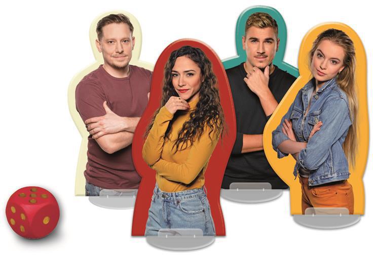 Obsah balení: oboustranný herní plán, 16 kartonových figurek, 16 plastových stojánků, bodová hrací kostka, pravidla