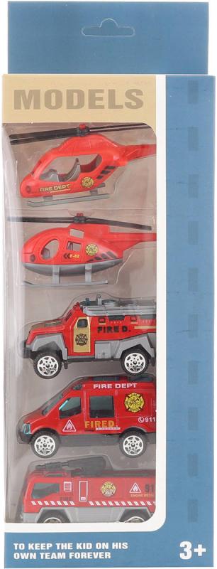 Dopravní prostředky hasičské kovové set 3 auta + 2 vrtulníky