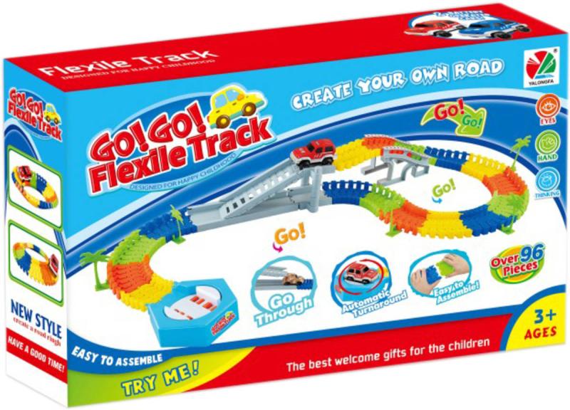 Variabilní dráha obsahuje 96 dílů, součástí je jedno autíčko. Provoz na 2×1,5V AA tužkové baterie – nejsou součástí. Jednoduché na sestavení. Šířka kolejnice: 7,8 cm. Tvoř si své vlastní cesty.