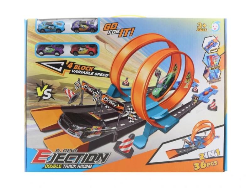 Dráha vystřelovací 36dílků + 4 kovová auta