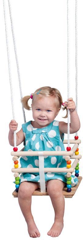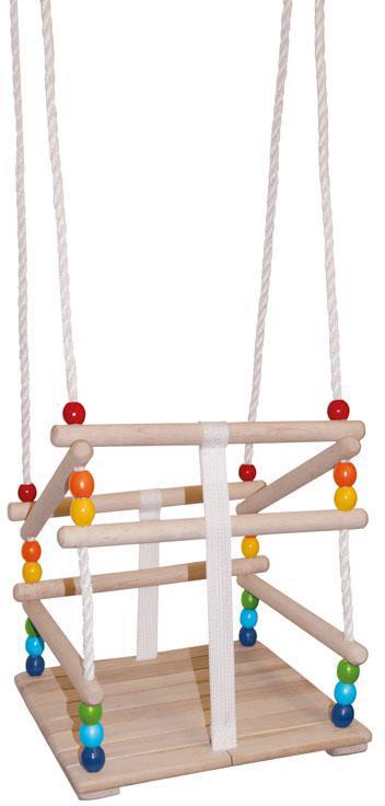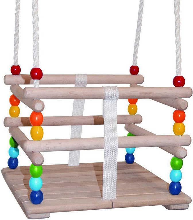 DŘEVO Baby houpačka závěsná se zábranou natur duhová pro nejmenší