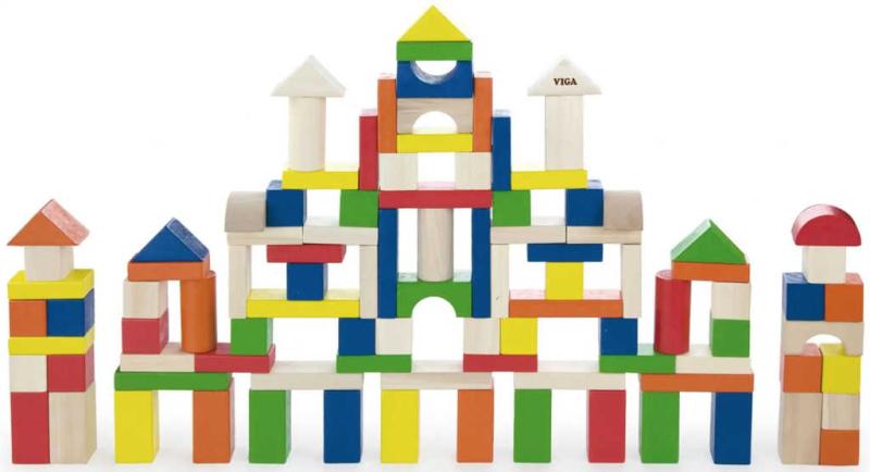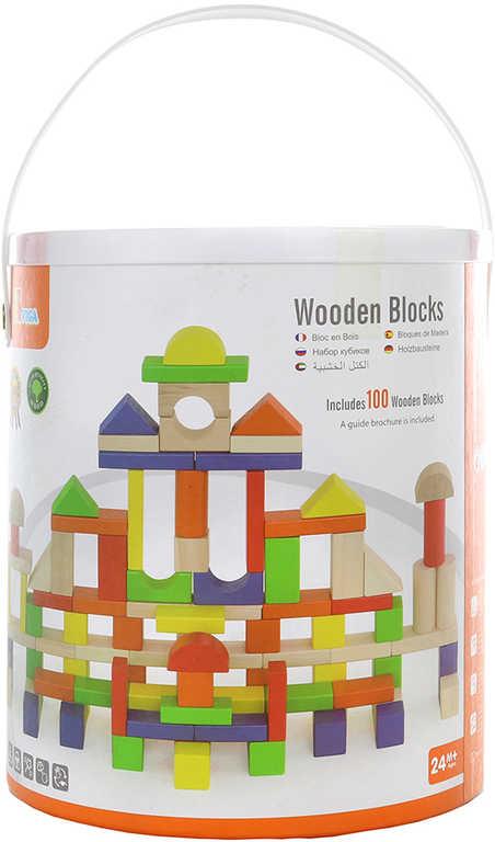 DŘEVO Baby stavebnice 100 kostek v kyblíku (dřevěná hračka)