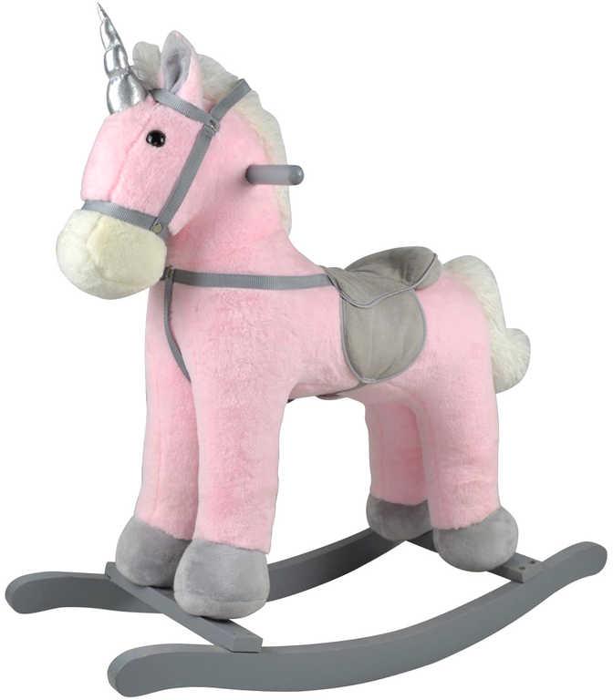 DŘEVO Kůň plyšový houpací jednorožec růžový 71cm řehtá na baterie Zvuk