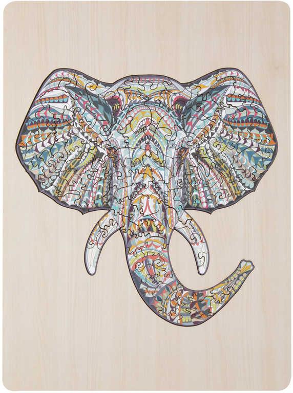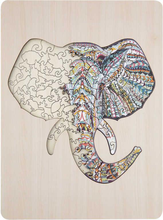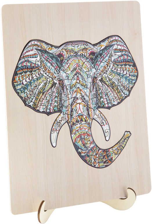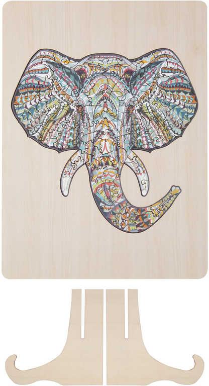 DŘEVO Puzzle obrysové na desce Slon 137 dílků set skládačka se stojánkem