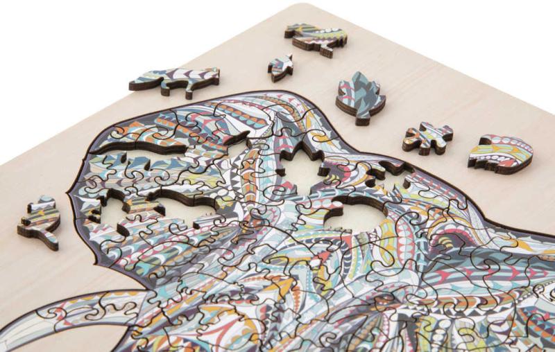 Dřevěné obrysové puzzle s různě tvarovanými dílky včetně podkladové desky vhodné pro děti i dospělé. Balení obsahuje stojánek na kterém si svoje puzzle můžeš vystavit.