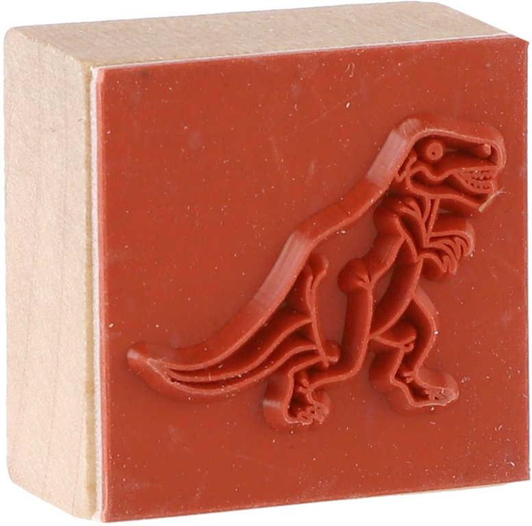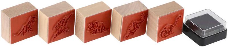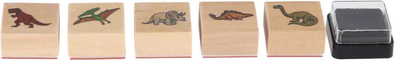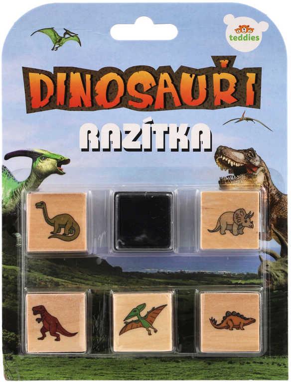 DŘEVO Razítka 3cm dřevěná 5+1 s poduškou Dinosauři na kartě