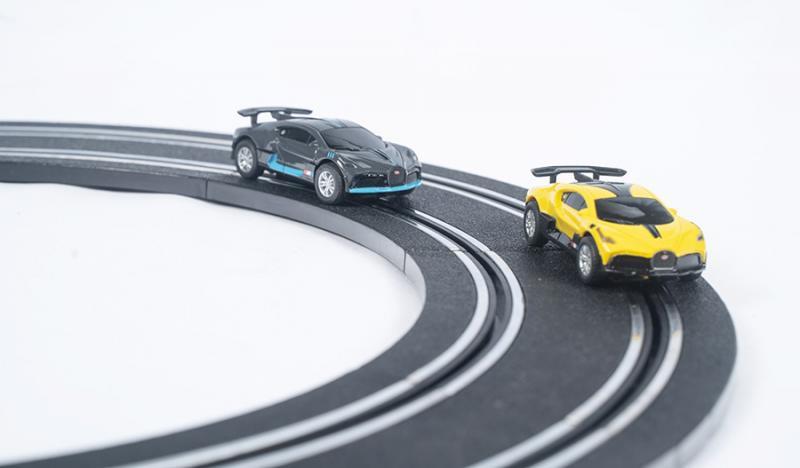 Autodráha Drivero Super závod, dĺžka 8,4 m, 3 rôzne varianty zloženia dráhy, 2 originálne licenčné autíčka Bugatti, napájanie na trafo, zábava pre celú rodinu.DRIVERO Autodráha Super závod 8,4 m – Zažite adrenalínový závod priamo u vás doma!