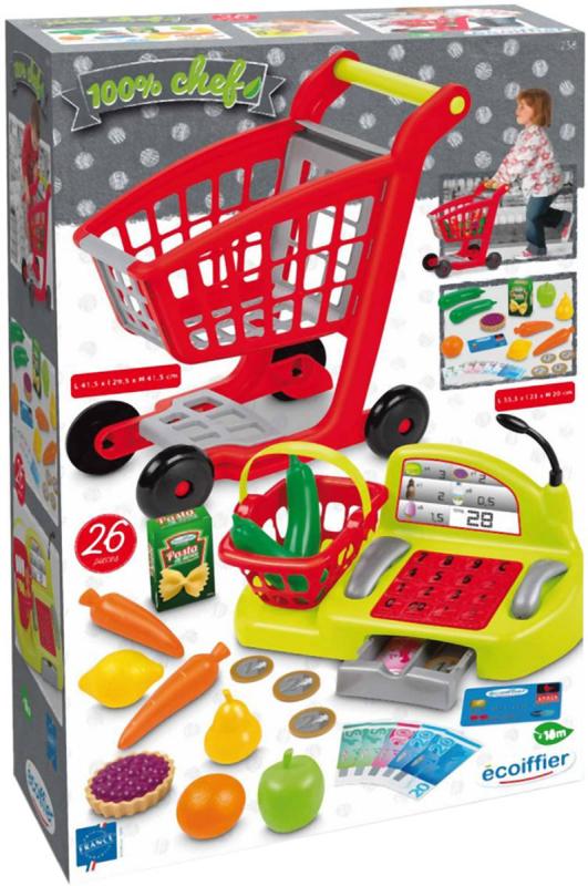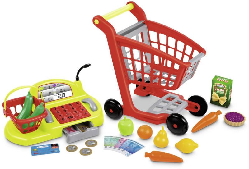 Ecoiffier Set nákupní vozík + pokladna s potravinami a penězi