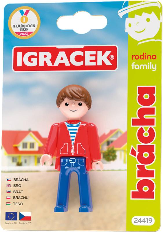 Bráška rád jezdí na kole, hraje na kytaru a dohlíží na mladší sourozence. Hra s Igráčky z edice RODINA pomáhá dětem rozvíjet sociální dovednosti a porozumění rodinným rolím. Legendární postavička od roku 1976. Figurka bez příslušenství. Vyrobeno v ČR.