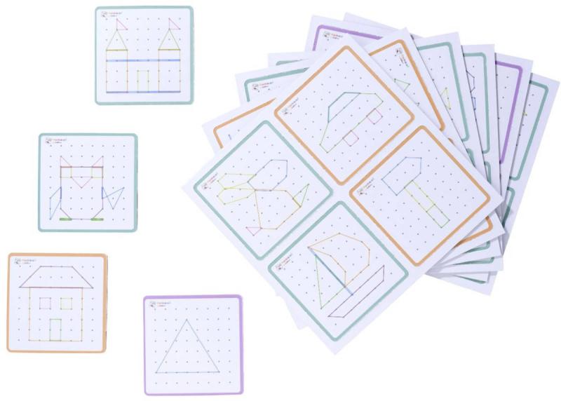 Montessori geometrická deska se 64 hřebíky a 60 barevnými gumičkami je skvělá sada pro podporu jemné motoriky a kreativity. Vaše dítě si může vymyslet postavičku podle svého přání nebo vytvořit motiv pomocí 24 karet s úkoly s různými úrovněmi obtížnosti. Geometrická deska je praktická a lze ji vzít kamkoli – do auta, do restaurace nebo k přátelům – ideální společník na cesty. Montessori geodeska o rozměrech 18×18 cm je vyrobena ze 100% lipové překližky s certifikátem FSC a je vhodná pro děti od 4 let.