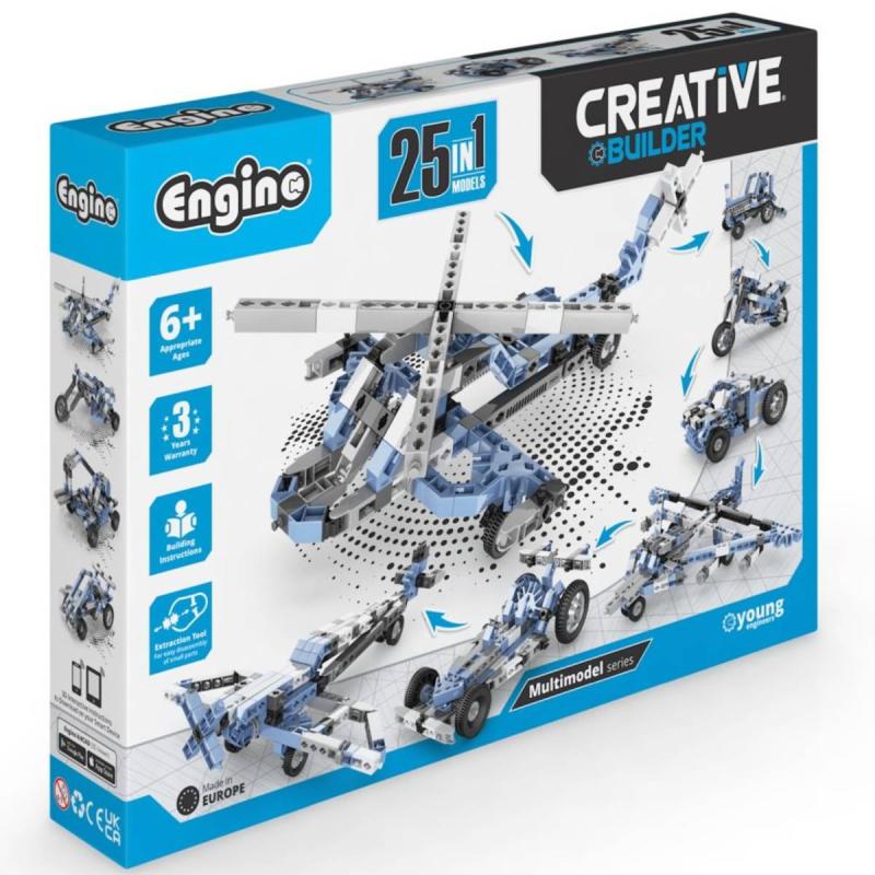 Stavebnice Engino Creative Builder 25 modelů je určena dětem od 6 let a nabízí širokou škálu možností pro rozvíjení kreativity a manuální zručnosti. Díky této stavebnici lze sestavit až 25 různých modelů, které zahrnují například vrtulník, motocykl, auto nebo bagr. Stavebnice je vyrobena z kvalitních plastových dílků v kombinaci modré, šedé, černé a bílé barvy, které jsou pevné a zároveň bezpečné pro děti.