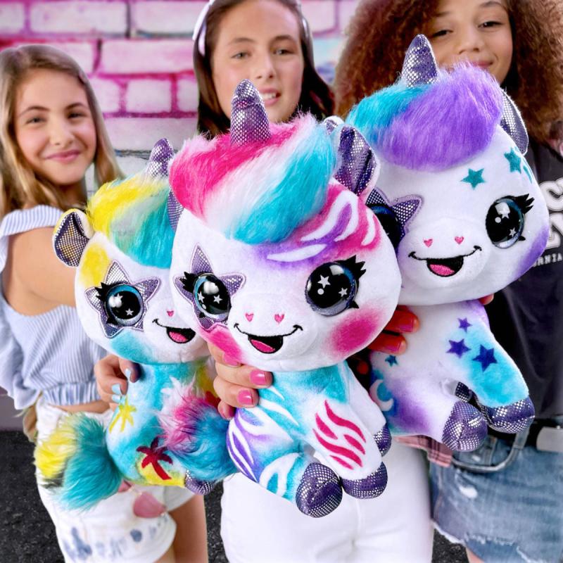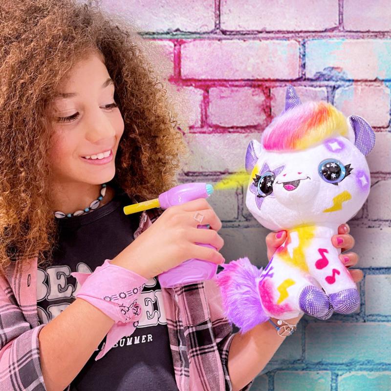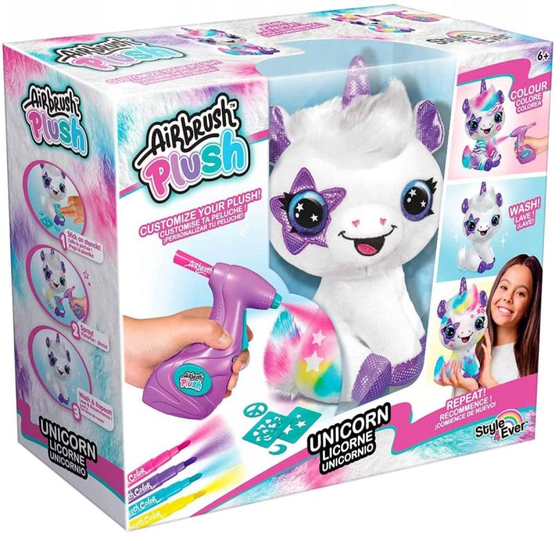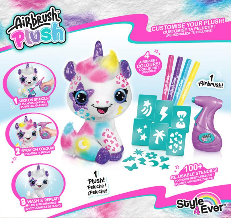 Plyšové zvířátko si můžeš pomocí airbrushe libovolně posprejovat, můžeš využít i samolepící šablony. Fantazii se meze nekladou. Pokud se ti vytvořený design přestane líbit, stačí plyšáka omýt nebo vyprat (pouze studenou vodou) a můžeš začít znovu.