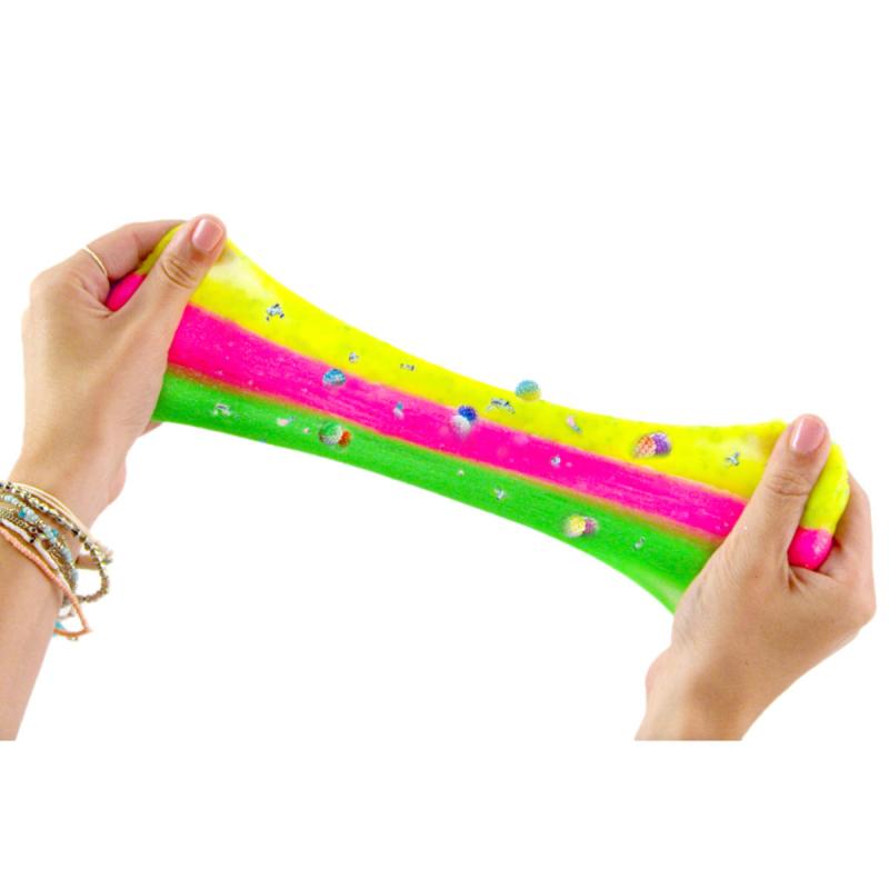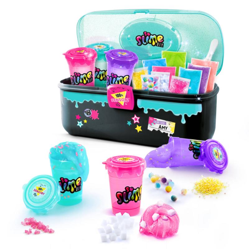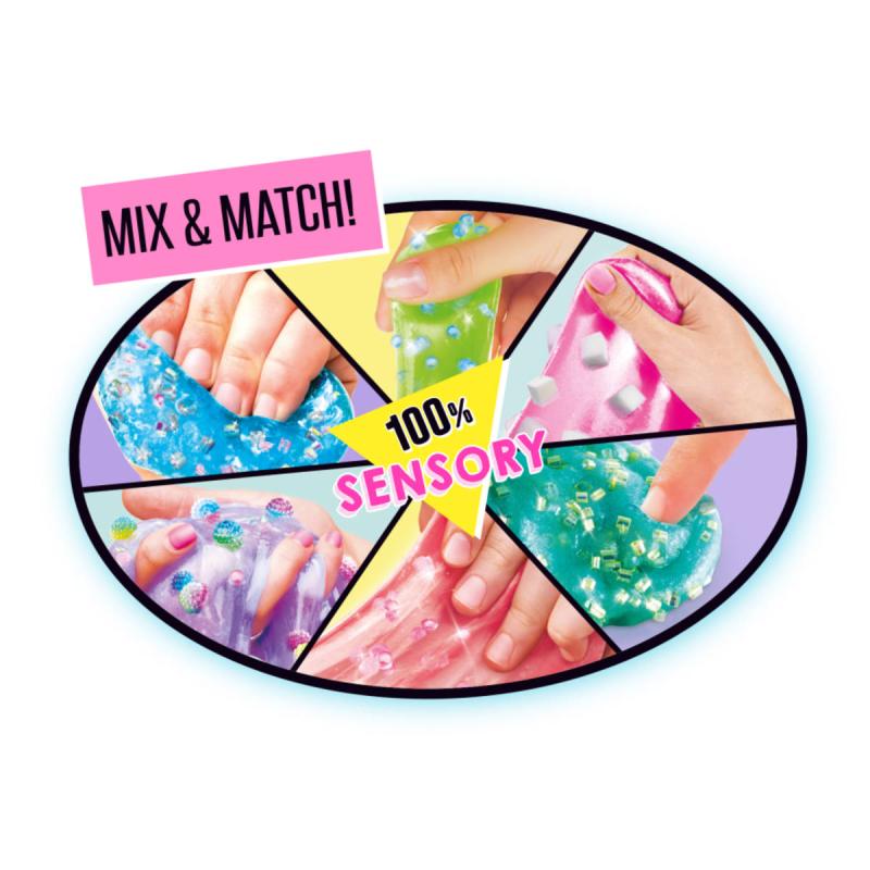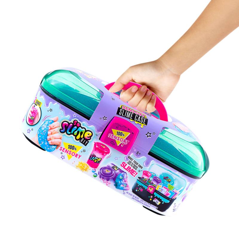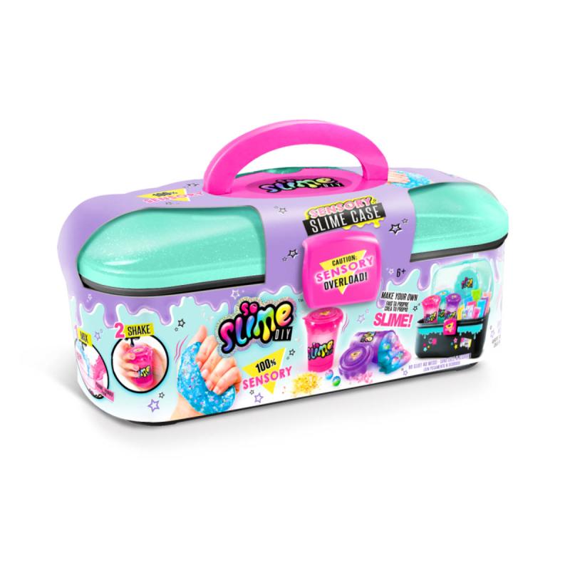 Toto je úplná novinka So Slime – Zábavný kufřík se slizem. Vytvořte si jedinečné barevné slizy. Míchejte slizy a přidejte ozdoby! Sliz natáhněte a užijte si zábavu. Obsah: 6 sáčků barevných slizů, 4 druhů ozdob do slizu, 3 x kelímek, špachtle na míchání.