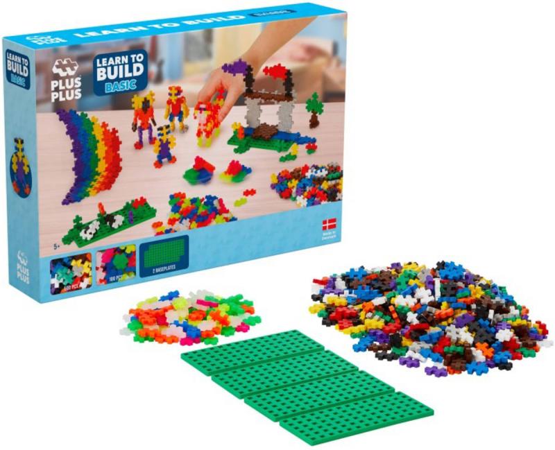 Kreativní sada PLUS-PLUS Nauč se stavět Basic – základní verze, obsahuje celkem 500 dílků basic a 100 dílků neon, ze kterých můžete podle podrobného návodu postavit obrázkové mozaiky, ale i 3D výtvory – zvířata, postavy, budovy apod. Součástí balení jsou i 4 základní desky a návod. Použijte svou fantazii a postavte i vlastní Plus-Plus designy!