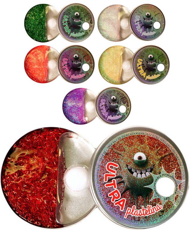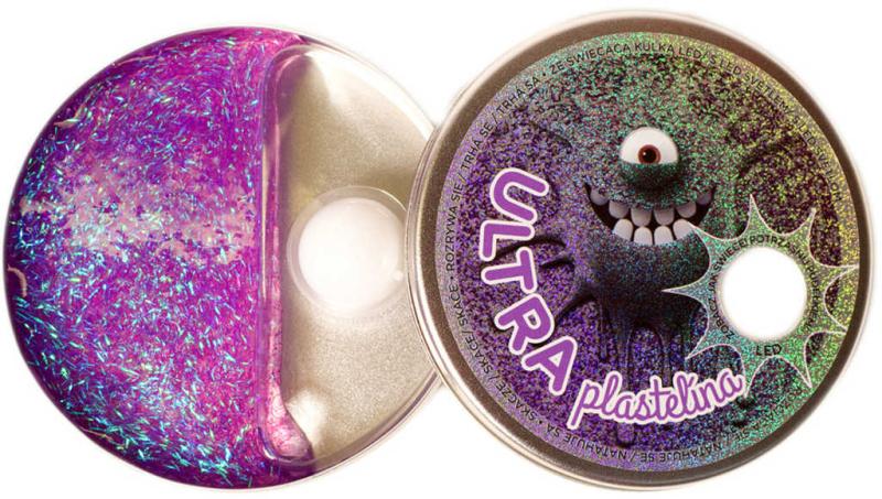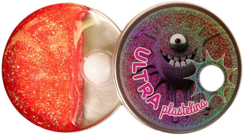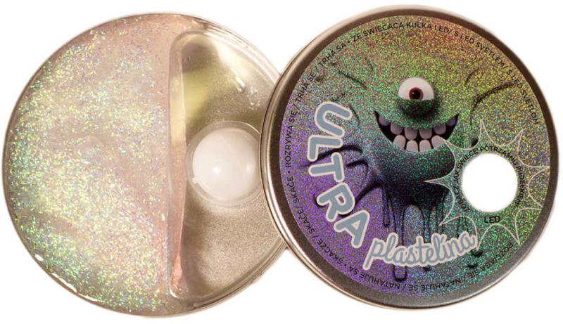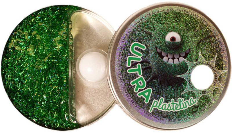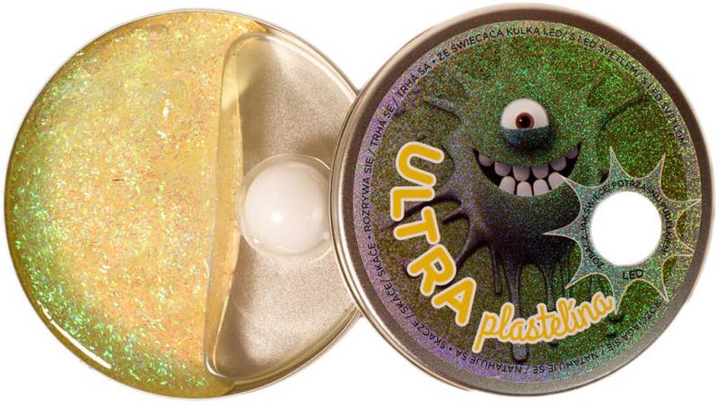 ULTRA Plastelína je unikátní hmota s výjimečnými fyzikálními vlastnostmi. Skvěle se tvaruje, natahuje jako žvýkačka, skáče jako hopík, trhá jako papír, funguje jako skvělá antistresová pomůcka. Můžete si vybrat z 6 barevných kombinací. Tato Ultraplastelína navíc obsahuje kuličku s barevným LED světlem, které při pohybu svítí a bliká. Vyrobte si svůj vlastní světelný hopík. Hračka na baterie, se světlem.