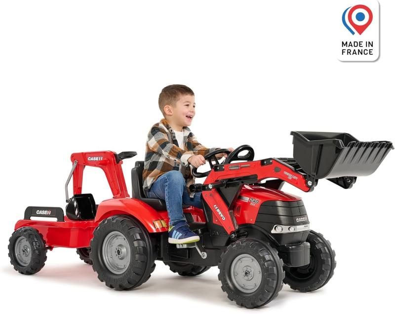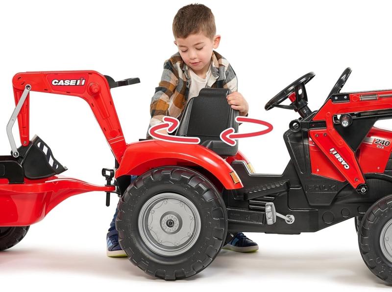 Tento šlapací traktor nabízí dětem mnoho možností zábavy díky funkčnímu směrovému volantu s klaksonem, který usnadňuje ovládání a přidává na autentičnosti. Přední lopata a kloubový bagr umožňují snadné nabírání a přesouvání písku, zeminy nebo listí, což rozvíjí motoriku a podporuje kreativní hry venku.