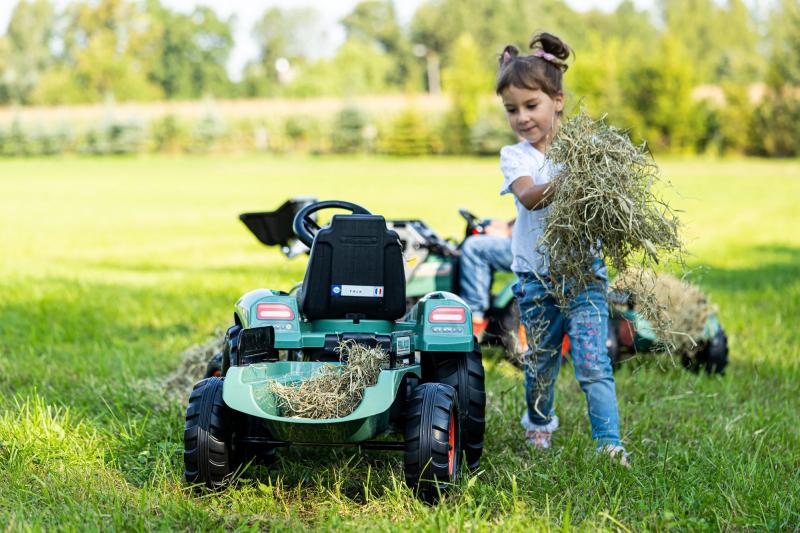 Francouzská společnost Falk nabízí dětem kvalitní šlapací traktor, který věrně napodobuje skutečný pracovní stroj a přináší hodiny zábavy. Tento model je vybaven funkčním nakladačem a velkým přívěsem, který lze snadno připojit i odejmout pomocí upevňovacího šroubu, což usnadňuje manipulaci a rozšiřuje možnosti hry.