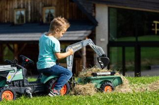 Tento šliapací traktor je ideálnou voľbou pre malé deti, ktoré rady napodobňujú skutočné stavebné stroje. Je vybavený plne kĺbovým bagrom, prednou lopatou a prívesom, čo umožňuje široké možnosti hry a rozvíja motoriku i predstavivosť. Vďaka robustnej konštrukcii a kvalitnému spracovaniu je vhodný pre deti vo veku od 2 do 5 rokov, ktoré si tak môžu užiť hodiny zábavy vonku i doma.