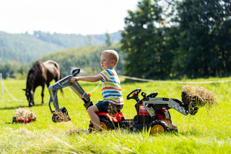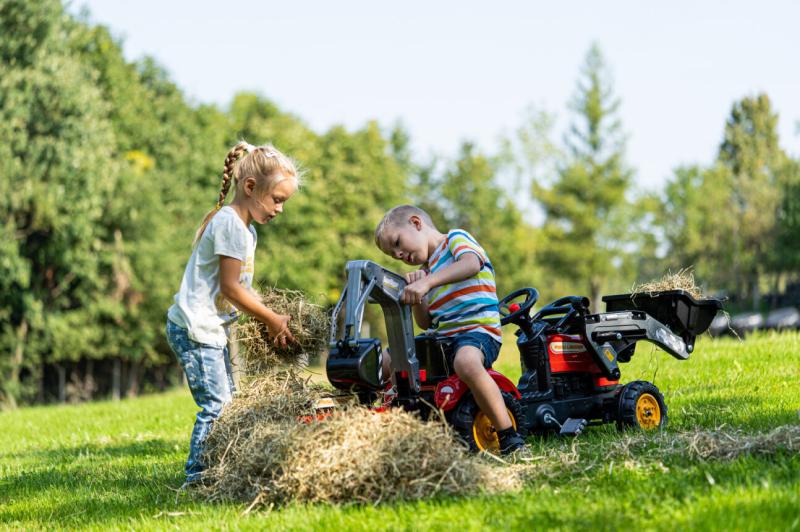 Tento šlapací traktor je navržen pro děti ve věku od 2 do 5 let, které rády objevují svět stavebních strojů a pomáhají při hrách na venkově i na zahradě. Díky plně kloubovému bagru a přední lopatě si mohou malé ruce vyzkoušet různé pracovní činnosti, zatímco přívěs umožňuje snadné přenášení materiálu a hra získává na reálnosti.