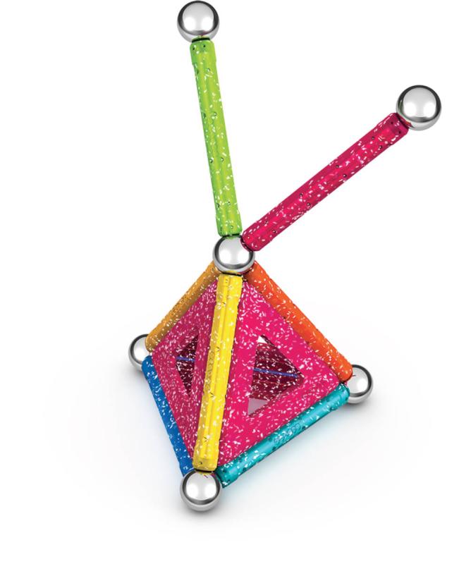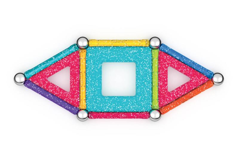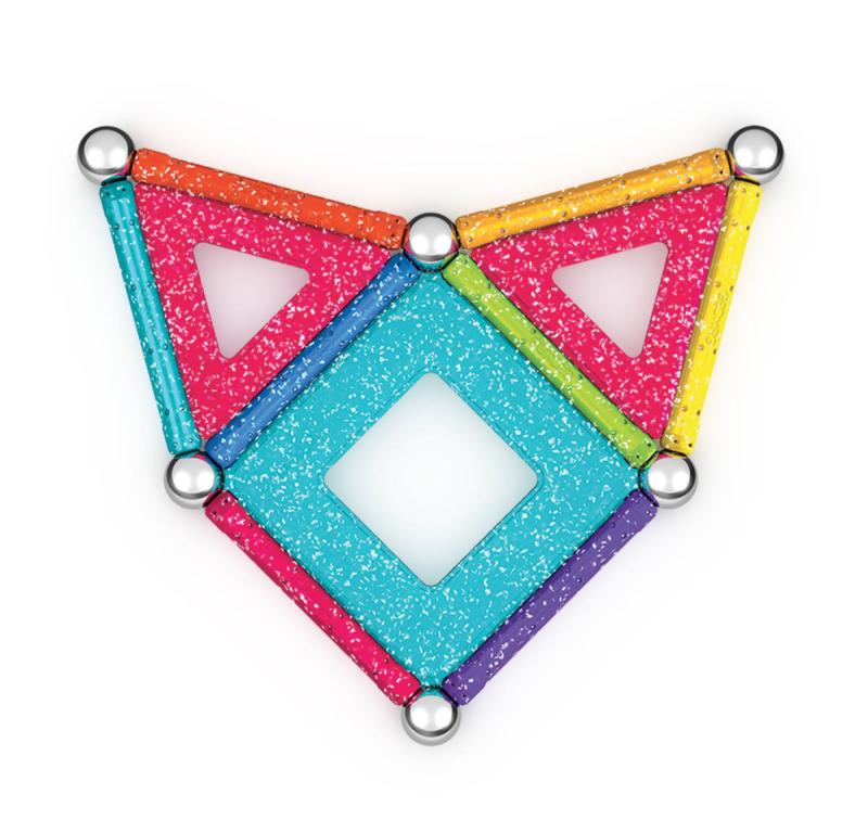Třpytivá magnetická stavebnice od Geomagu, vyrobená ze 100% recyklovaného plastu, obsahující v dlouhých tyčkách i výplních unikátní třpytky.