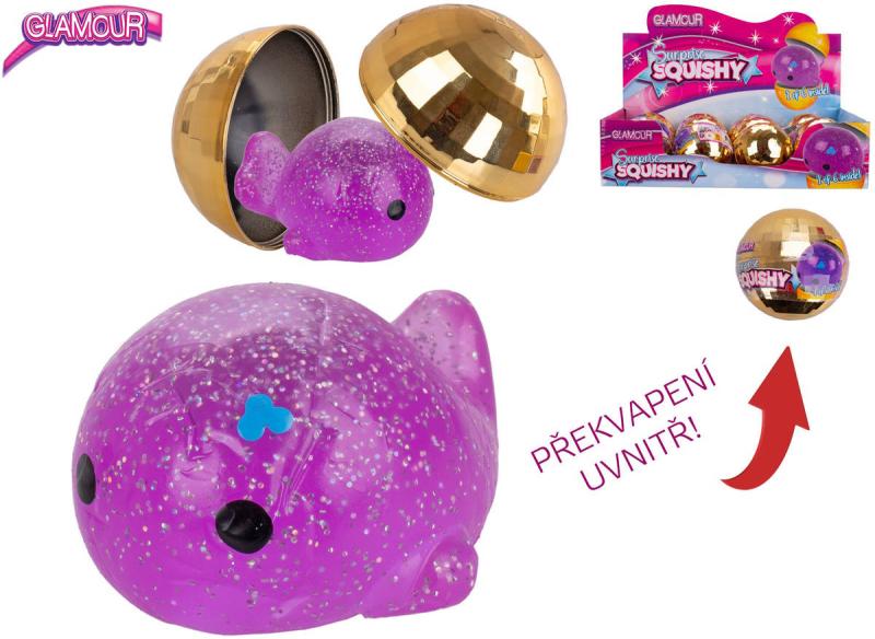 Glamour plastová zlatá koule, která v sobě ukrývá strečové, mačkací třyptivé zvířátko. 6 různých variant, s překvapením.