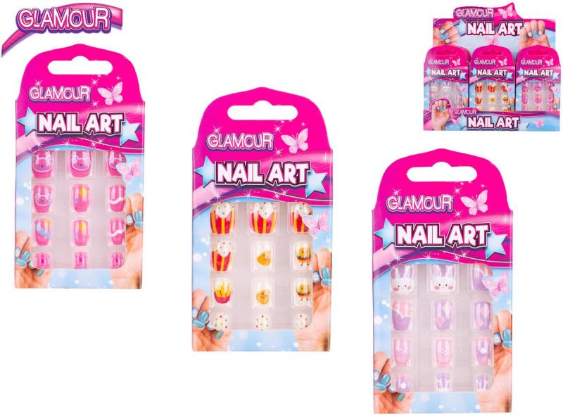 Glamour nalepovací dětské umělé nehty set 12ks 3 druhy