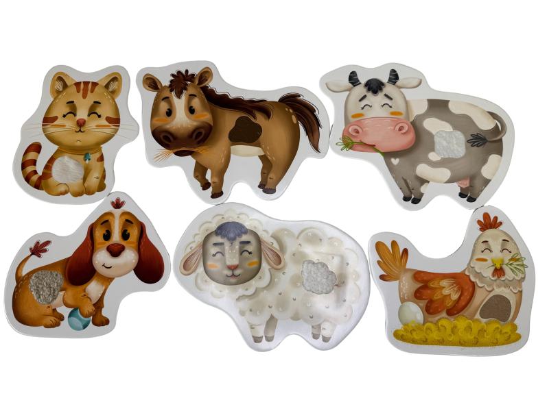 Dětské puzzle zvířátka 6 dílků. Toto hmatové puzzle seznamuje s roztomilými zvířátky prostřednictvím smyslové hry. Speciální puzzle, díky kterému pohladíš si zvířátka a hned je poznáš aniž by jsi je viděl naživo.Objevte kouzlo učení hrou s naším dětským puzzle roztomilá zvířátka 6 dílků!