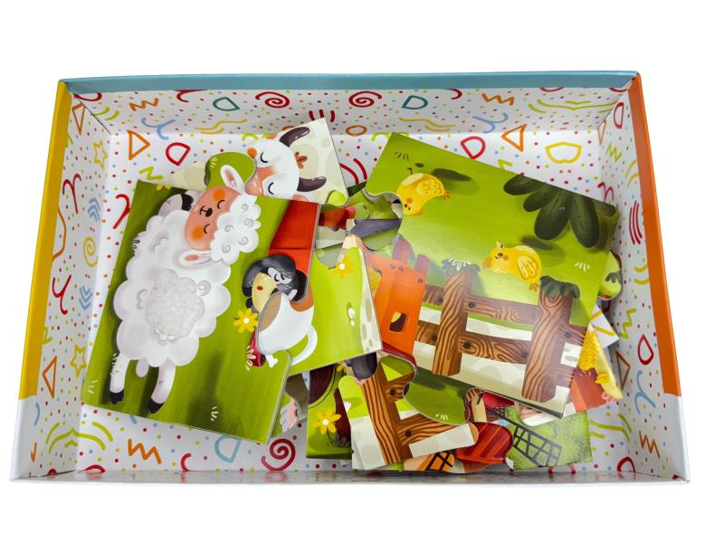 Naše dětské puzzle obsahující 12 dílků, které představují různé zvířátka, od oveček po kuřátka. Každý dílek je vyroben z kvalitního a bezpečného materiálu, který je ideální pro malé dětské ručičky. Díky živým barvám a realistickým ilustracím se děti nejen baví, ale také se učí rozpoznávat různé jejich funkce.