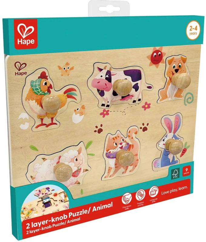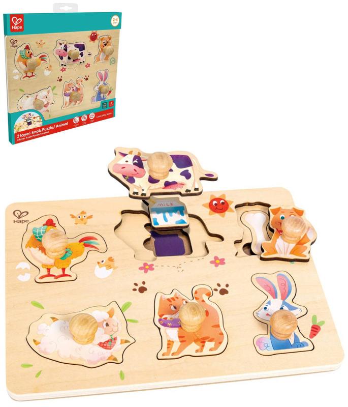 Hape DŘEVO Puzzle baby vkládací Farma s úchyty 12 dílků na desce