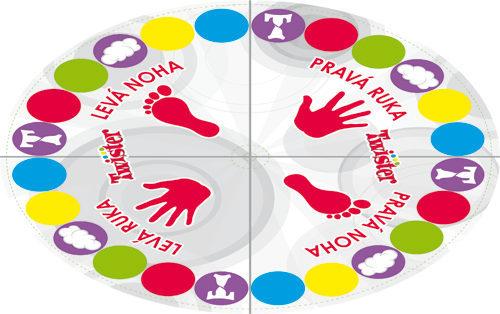 Zábavná společenská pohybová hra TWISTER. Roztočte kotouč a umístěte ruce nebo nohy na políčka barev na podložce! Neudržíte-li rovnováhu, pak prohráváte!Tuto hru si oblíbí každý, který má rád aktivní zábavu.