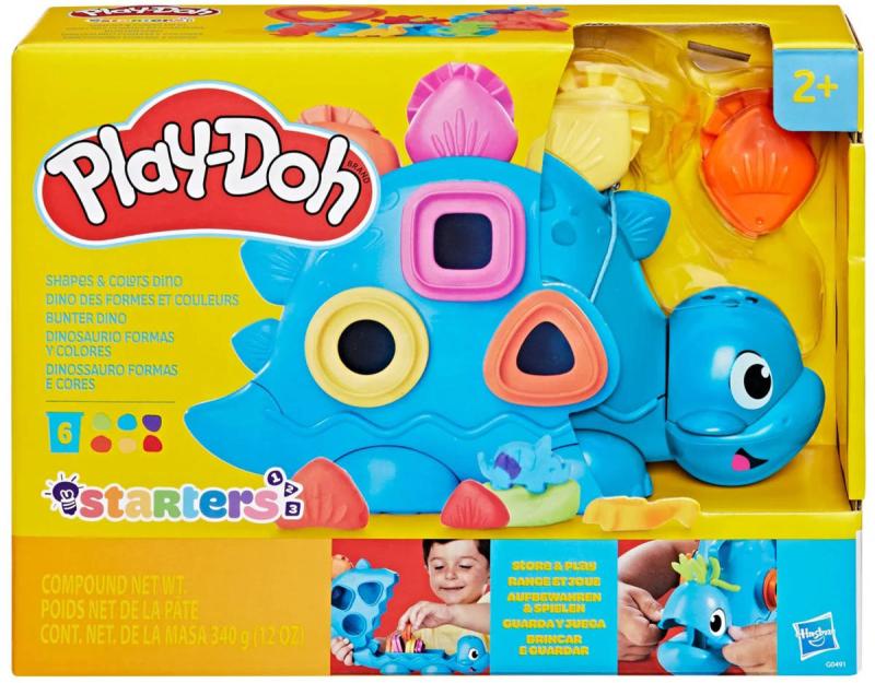 HASBRO PLAY-DOH Tvary a barvy - Dinosaurus, kreativní set, součástí modelína (6 kelímků = 340g), pracovní nástroje a figurka dinosaura s aktivitami.Je čas na dinosauří párty s dinosaurem z Play-Doh – tvary & barvy. Tato sada hraček pro děti nabízí řadu zábavných aktivit s rozkošným dinosauřím kamarádem. Vystřihujte a válejte různé tvary s příslušenstvím Play-Doh. Praktický dinosaurus také umožňuje uložení nářadí uvnitř i zvenku dětské herní sady. Herní podložka nabízí zábavné párovací aktivity, které dětem také pomohou udržet si výtvory z Play-Doh mimo stůl. Je to skvělá hračka pro rozvoj fantazie, která je může povzbudit k procvičování jemné motoriky a objevování tvarů a barev pomocí hmatové hry. Objevujte tvary a barvy s prehistorickým kamarádem, který obsahuje 11 velkých, robustních nástrojů a zábavné senzorické herní aktivity pro děti od 2 let. Naplňte dinosaura hmotou a přitlačte ji k hlavě, aby mu narostly legrační vlasy z plastelíny. Sada obsahuje 6 kelímků modelovací hmoty.