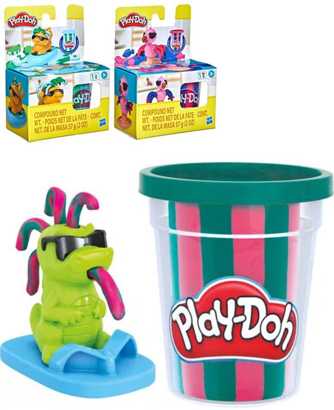 Ke každému roztomilému zvířátku kapesní velikosti jsou přiloženy 2 nádobky s dvojbarevnou modelínou Play-Doh, ze kterých mohou děti tvořit! Každý herní set obsahuje formičky s letní tématikou.