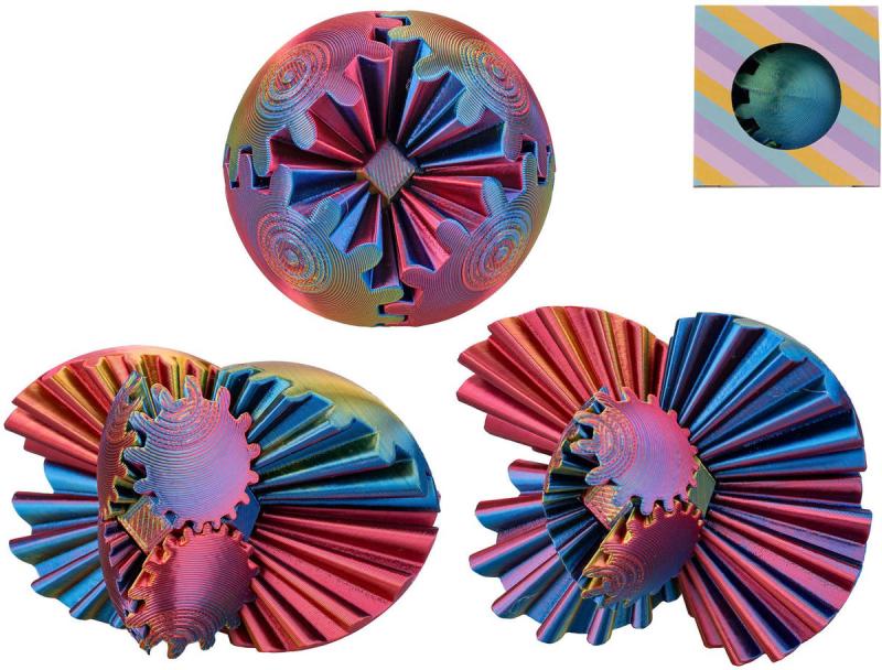 Hlavolam, antistresová pomůcka a umělecké dílo v jednom! Při rozložení se míček transformuje do spirálovitého, fraktálového tvaru odhalujícího komplexní systém zubatých kol. Neustálé skládání a rozkládání je skvělý způsob, jak se zbavit stresu, zaměstnat ruce a zlepšit koncentraci. Vyrobeno technologií 3D tisku. Jedná se o zajímavý mechanický hlavolam, který může sloužit i jako dekorativní umělecké dílo.
