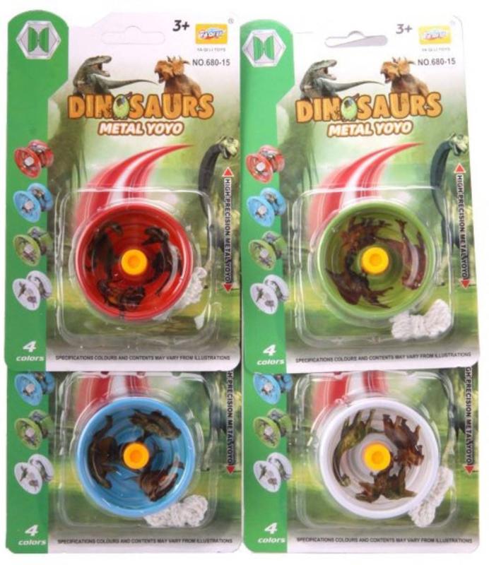 Hra jo-jo (yo-yo) kovové 6cm dinosaurus na kartě 4 barvy