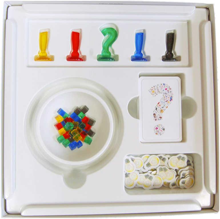 4 sady (modrá, červená, žlutá, černá) pro pomocné koncepty (symbol vykřičníku a 8 kostiček) -