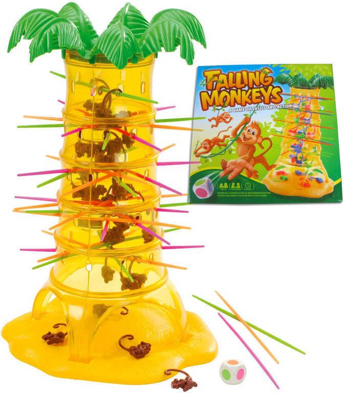 Zábavná dětská rodinná hra pro 2–4 hráče, to jsou Padající opičky. Padající opičky nejsou deskovou hrou, ale hrou v prostoru. Základem hry je mít štěstí a odhad.Padající opičky obsahují průhlednou palmu, do které se postupně dle libosti zastrkávají tyčinky. Poté se ze shora palmy pustí dovnitř malé opičky, které se o tyčinky zaháknou svými ocásky. Vašim úkolem je vytahovat postupně tyčinky tak, aby opička nepropadla dolu. Vypadlá opička je vlastně trestným bodem, takže vítězem hry je ten, který má po vypadnutí všech opiček nejméně opiček.