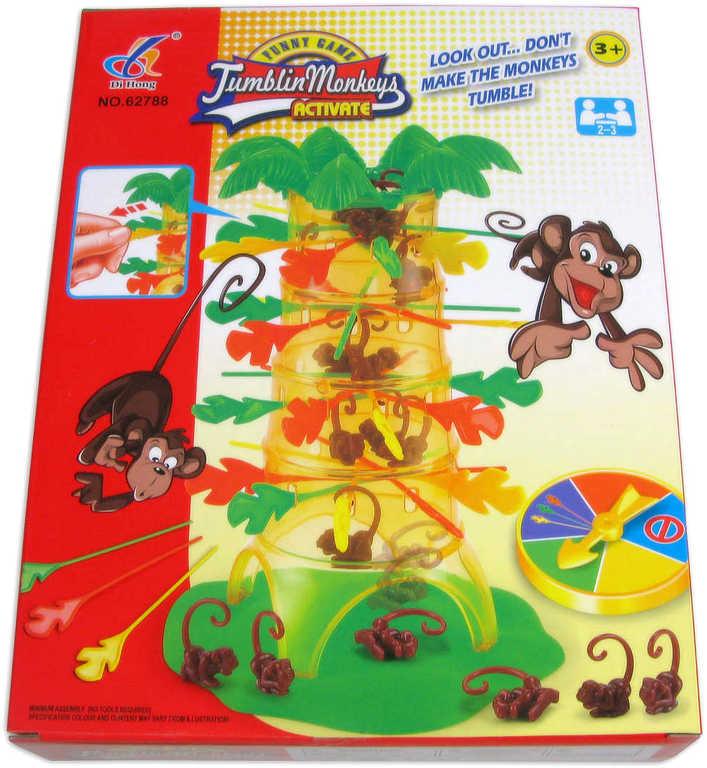Veselá dětská společenská hra s padajícími opičkami. Hra nabízí dětem spoustu legrace a zábavy. Nenechte opičky spadnout! Hráči umístí opičky na strom a pohybují tyčkami podle pohybů hrací kostky. Hráč, který posbírá nejmenší počet opiček, vyhrává.