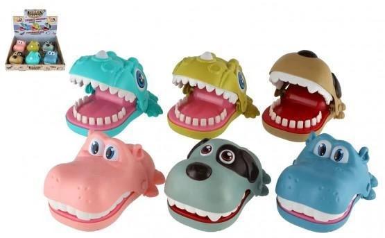 Zábavná postřehová hra zvířecí zuby, kdy zvířátko otevře tlamu a děti se střídají a postupně zatlačují jeho zuby. V určitý moment zvířátko tlamu zaklapne. Ten, koho zvířátko nekousne, vyhrává.