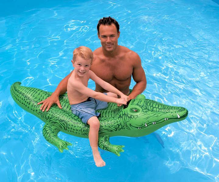 58546 INTEX Vodní vozítko krokodýl/aligátor - nafukovací dětské lehátko/nafukovačka s úchytem na vodu.