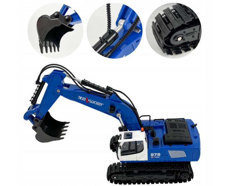 Tento detailne spracovaný bager na diaľkové ovládanie je vhodný pre všetkých, ktorí majú radi modely stavebných strojov. Je vyrobený z odolného plastu a verne napodobňuje skutočné bagre, čo ocení každý zberateľ aj nadšenec. Každý pás je ovládaný samostatne, čo umožňuje otáčanie na mieste a veľmi presné manévrovanie. Pomocou páčkového ovládača je možné ľahko ovládať všetky funkcie modelu, vrátane pohybu vpred, vzad, doľava a doprava. Kabína sa otáča vrátane ramena až o 680°, čo umožňuje realistické bagrovanie.