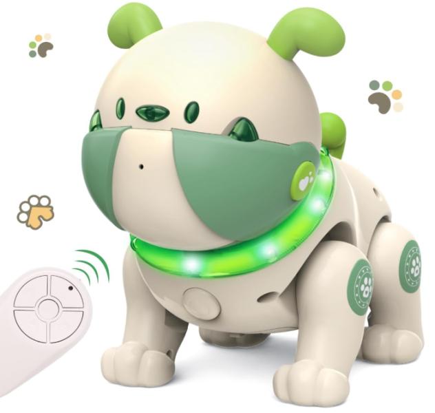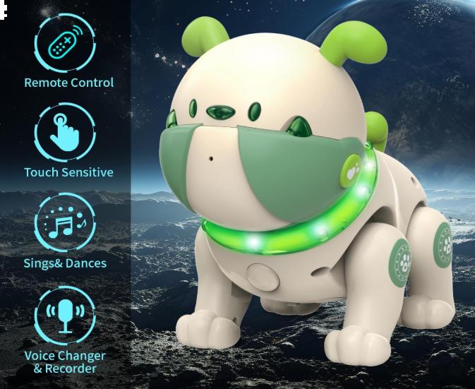 Tento dálkově ovládaný pes představuje zábavnou a interaktivní hračku, která potěší děti i dospělé. Díky zabudovaným funkcím dokáže zatančit, přehrávat uklidňující ukolébavky a umožňuje nahrát vlastní vzkaz, který pejsek následně přehraje. Reaguje také na pohlazení, což zvyšuje pocit živosti a interakce s hračkou.
