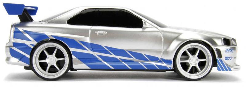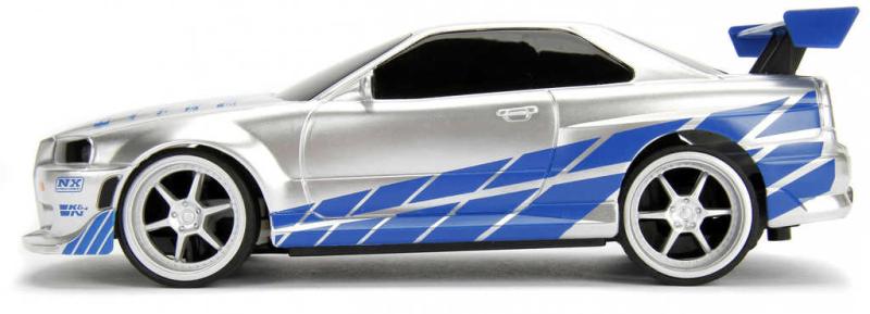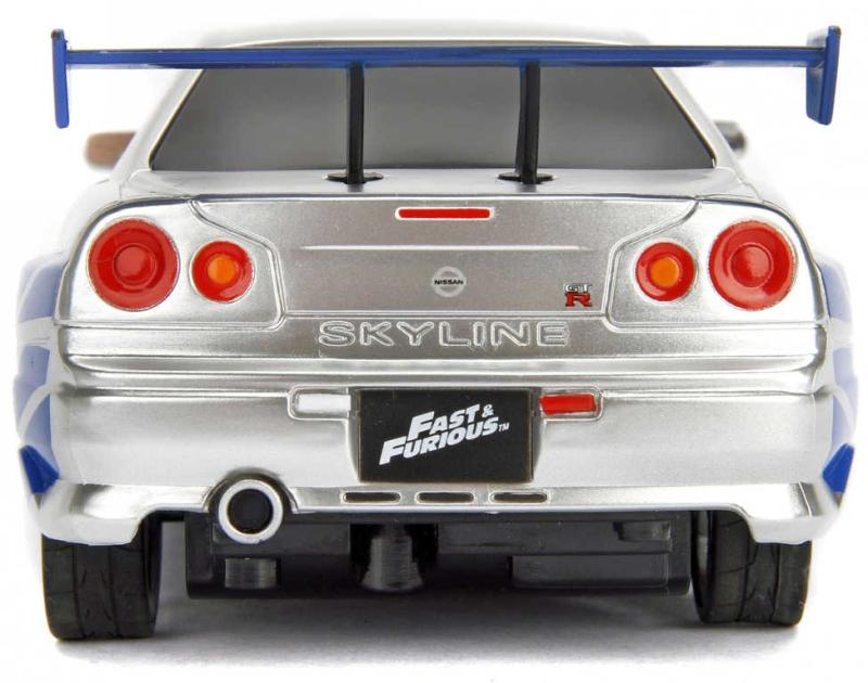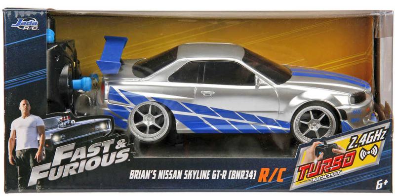 Brianovo RC auto Nissan Skyline GT-R (BNR34) na dálkové ovládání z akčního filmu Rychle a zběsile, pro všechny jeho fandy. 2 kanály (jezdí vpřed, vzad, vlevo a vpravo). Turbo funkce. Hračka na baterie.